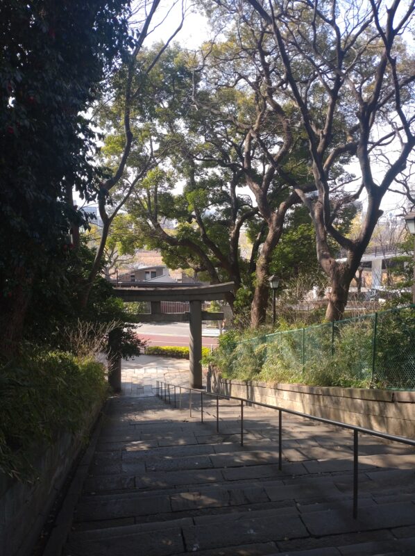 表参道を戻ります。脇道に入り、この石段を下ります。