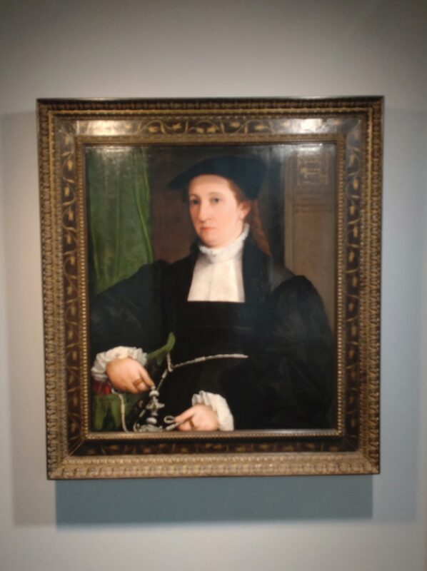 端正な作品。服装から、男性をモデルにした肖像画かと思いました。中世の貴族男性も、長く伸ばした髪を背中に垂らしていたんですよね、確か。