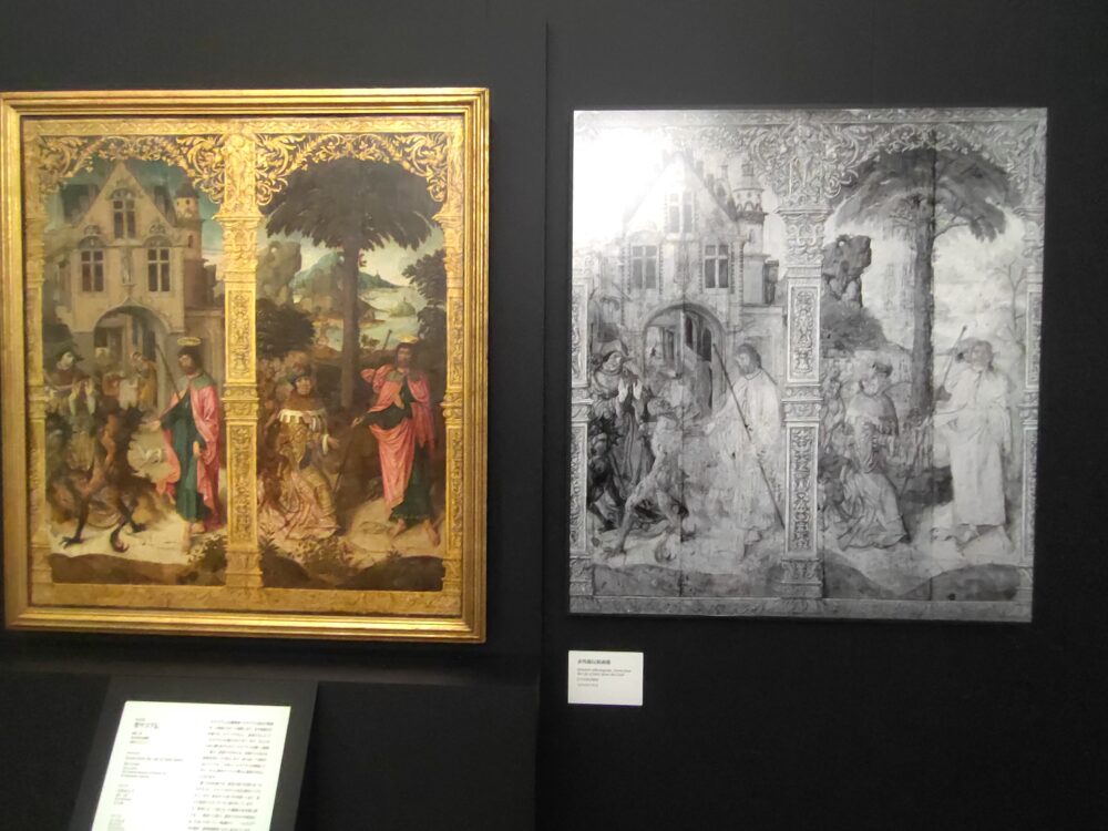 左:作者不詳《聖ヤコブ伝》 油彩/板 国立西洋美術館 旧松方コレクション  右:赤外線反射画像