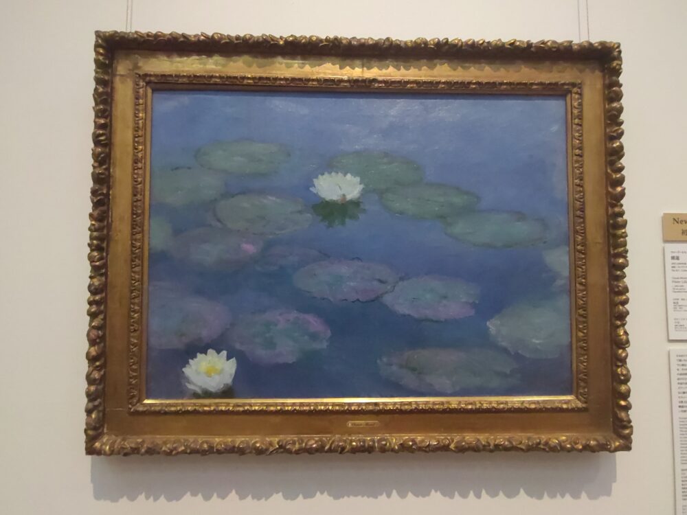 モネの《睡蓮》は、昨秋の企画展で沢山拝見したせいか、やや食傷気味です。展示室で拝見した時は、睡蓮の花の反映像が描かれている点に気が付きませんでした。改めて画像を拝見すると、むしろ初期に描かれた本作《睡蓮》の方が素敵ではありませんか。