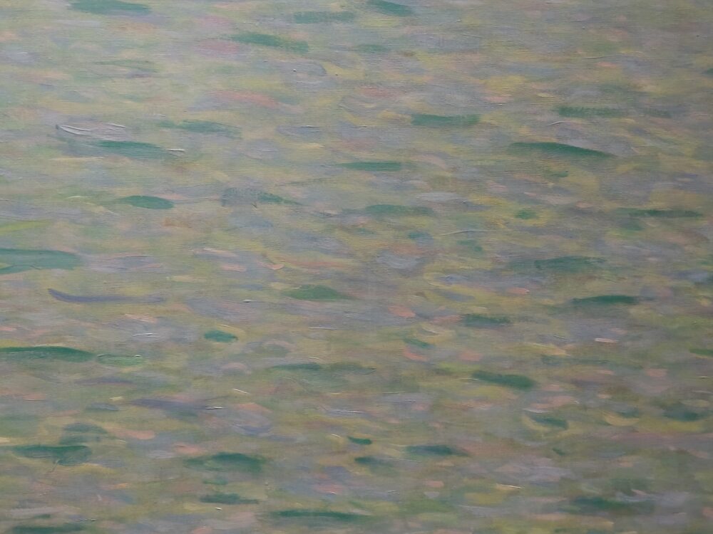 中景(画面真ん中あたり)になると、遠景では溶け合って見えた色の一つ一つが識別できるようになります。緑色のブラッシュストロークが目立ちますね。