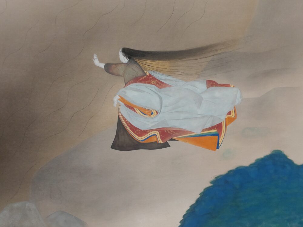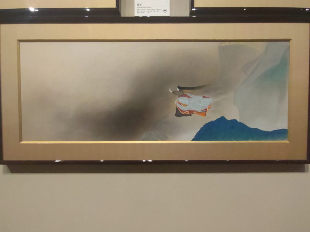 1.旅立 2.寝所 3.熊野 4.清姫 5.川岸 6.日高川 7.鐘巻 8.入相桜 の連作から「日高川」のみ撮影することができます。上部に展示された作品も写してしまいそうなほど隣接して展示されています。