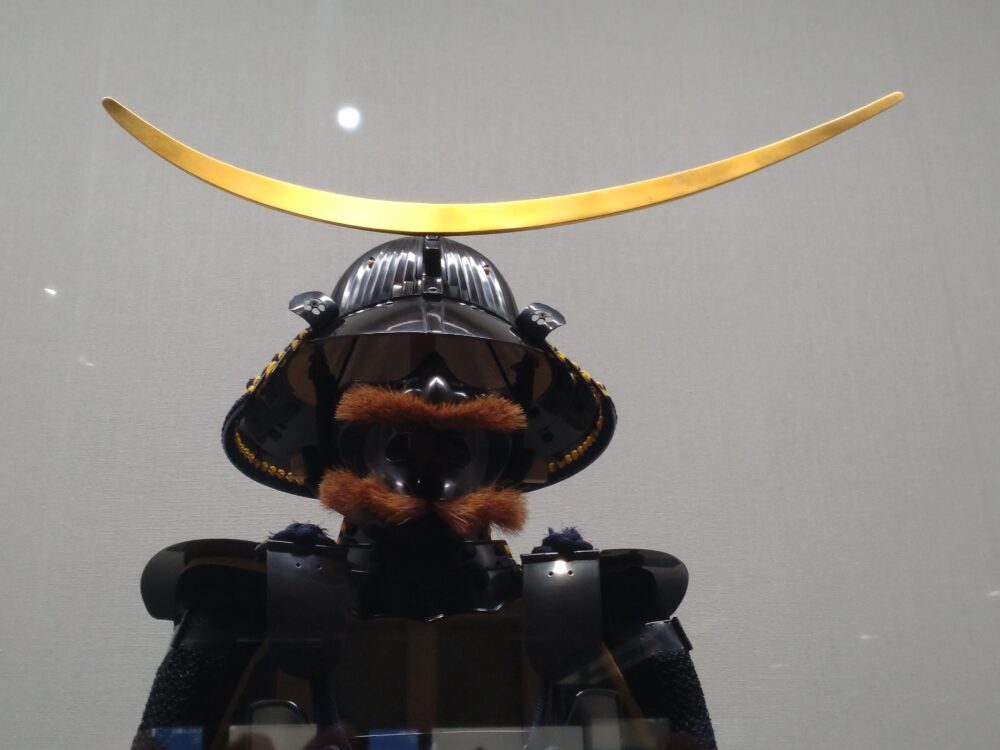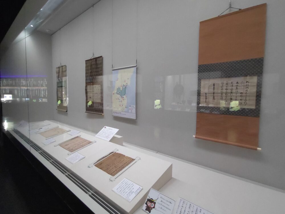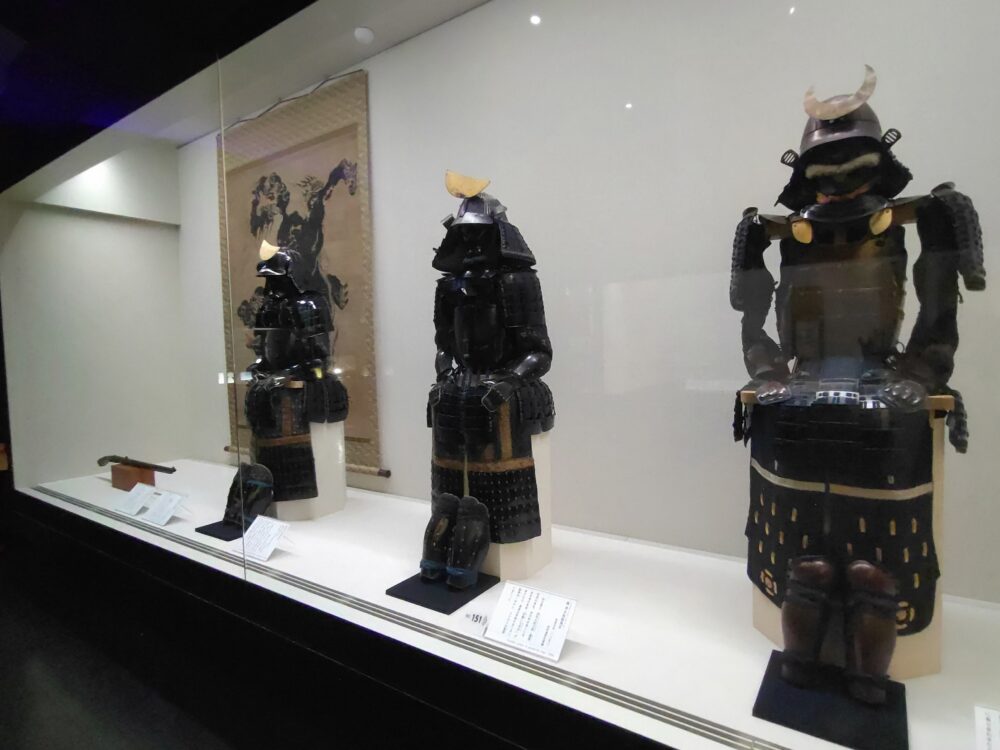 別の展示品のガラス面への映り込みをご容赦ください。留守氏といえば、大河ドラマ『独眼竜政宗』で、長塚京三さんが政宗の叔父・留守政景を演じていました。臣下の立場に徹し、政宗を終生支え続けた献身が印象的でした。