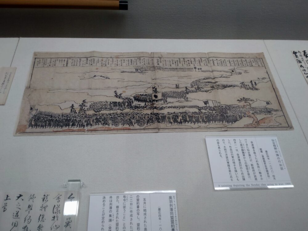 当時矢面に立っていた会津藩と、東北地方の諸藩との関係性については殆ど知りませんでした。領地を増やすため熾烈な争いを繰り広げた政宗の時代には、他藩を擁護・支援する未来など全く想像できなかったのではないかと思う次第です。