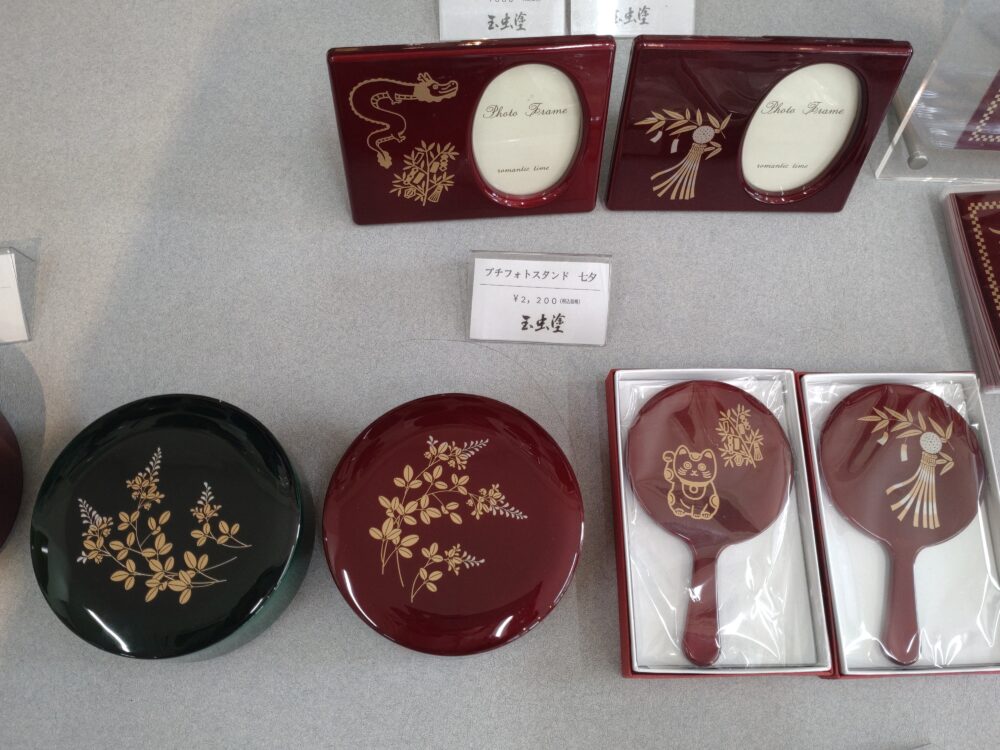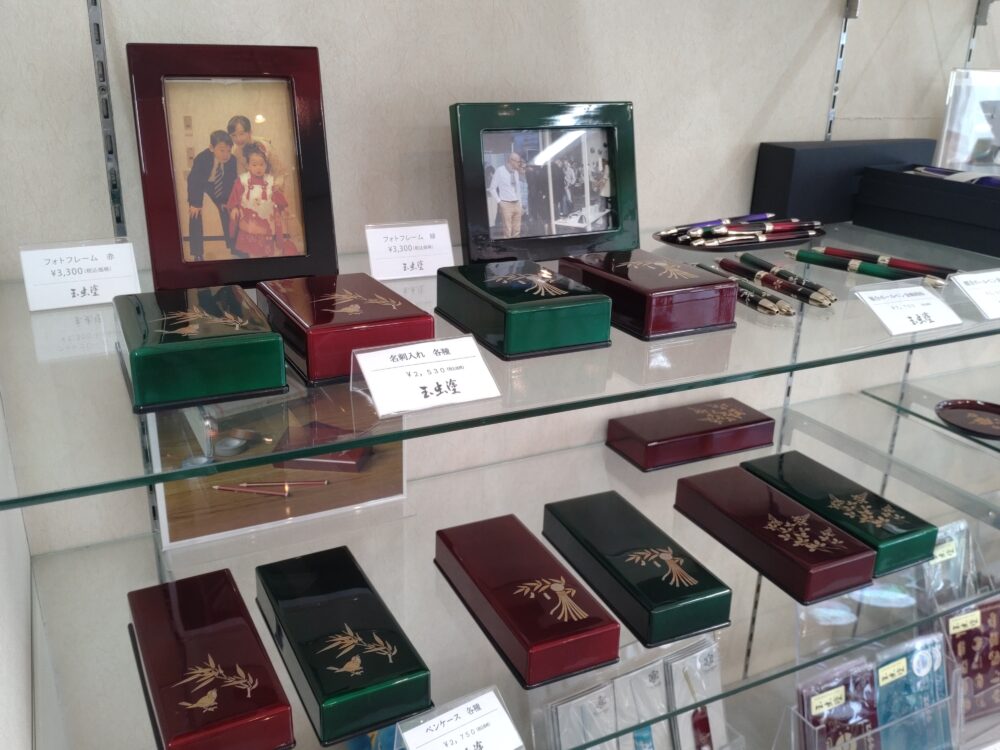 店主から写真撮影の許可を得て陳列品を撮影。《玉虫塗》商品ラインナップをランダムにご紹介しましょう。