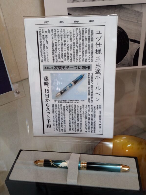 プロスケーター/羽生結弦さんのコーナーが設けられています。仙台の誇るアスリートだけあって、玉虫塗ボールペンまで商品化されたのですね。15歳でアイスショーに出演されていた羽生選手をテレビ越しに見初めて(?)7年ほど応援しておりました。当時踊っていた《ロミオとジュリエット》(阿部奈々美さん振付)は、未だ5指に数えたいプログラムです。