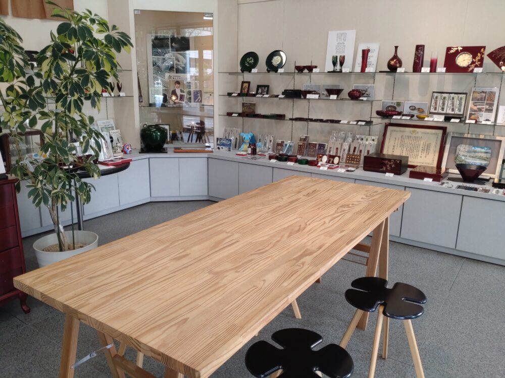 広々としたテーブルと可愛らしいデザインの椅子。頻度は分かりませんが、蒔絵体験等のワークショップが開催されるようです⇓