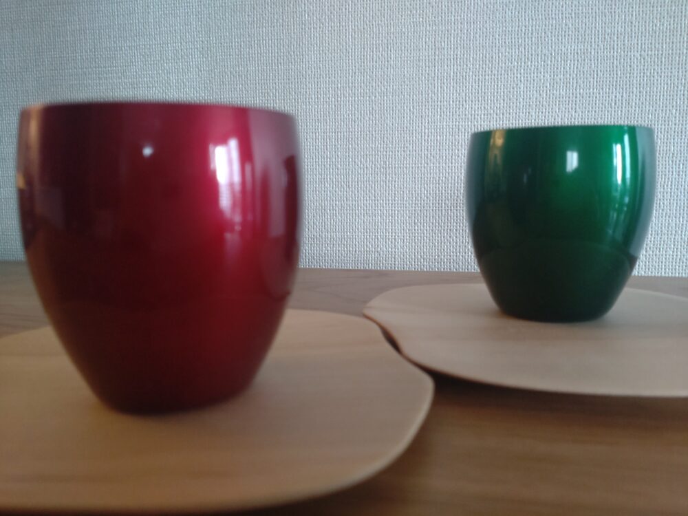 こちらの玉虫塗ワインカップペアセットは、先にご紹介したナノコンポジットワインカップペアセットの半値で購入できます。
